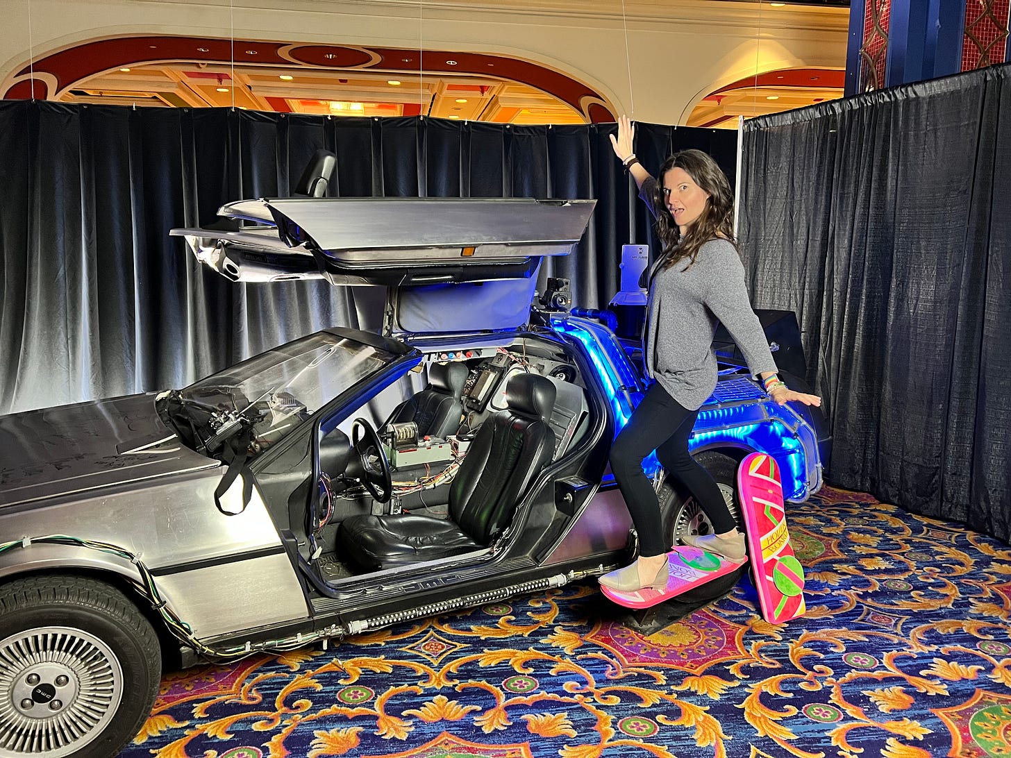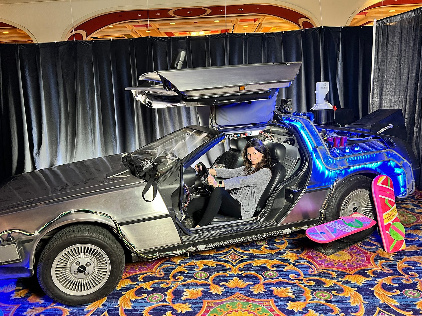 Beyond the Back to the Future delights, I meet a bunch of people who were wonderful. This was not a place of celebrity worship and creepy hierarchical power structures. Do you know what I talked to con people about? How watching Mrs. Doubtfire helped them with their parent’s divorce. How they love my brand new baby of a company Blue Mala and have found some helpful tools for mental health there. How they always felt like weirdos but then they started coming to cons with other people who loved Things the way they did - and that has provided them with community and connection and belonging.